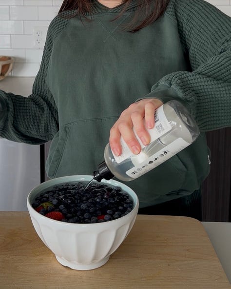 Thoroughly washing produce is so so important! This nontoxic and natural fruit and veg wash helps remove dirt, pesticide residue and any other nasties our produce comes into contact with during transport.